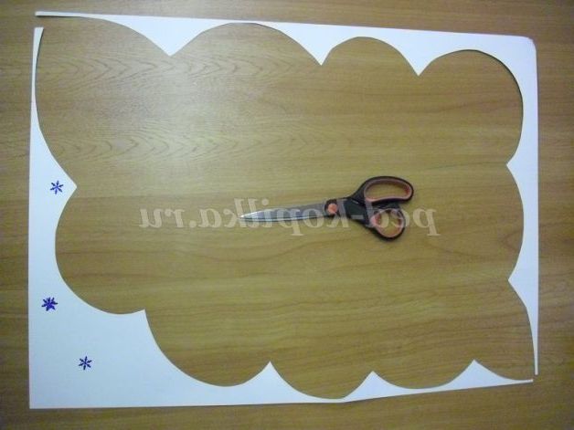 Тепер відрізаємо краю від білого ватману, надаючи роботі контур хмар.