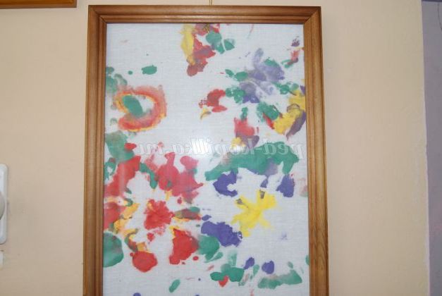 5. Після закінчення роботи даємо тканини 5 хвилин підсохнути і розмотує нитки. Дивимося і милуємося цією красою. Сушимо тканина з малюнком.