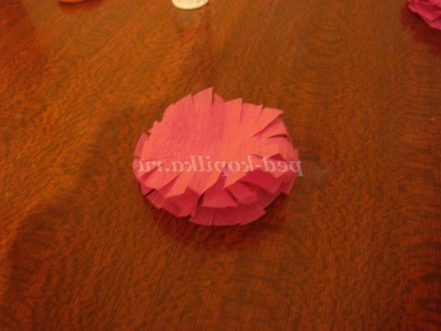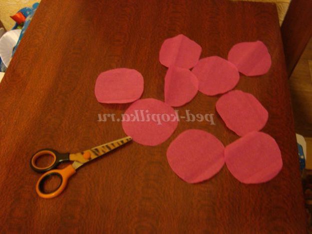 З крепованого паперу вирізаємо 9 кіл однакового діаметру. Шаблон кіл виготовити з картону і перенести на крепированную папір-це будуть наші квіточки.