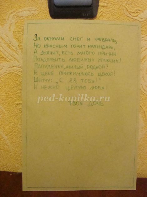 При бажанні можна підписати листівку або зробити напис "Татусю", "з 23 лютого" і т.д.