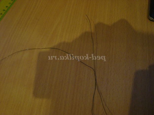 19) Залишилися листочки. Скручуємо дріт, як показано на фото. Внизу виходить петля, а робочий кінець залишається завдовжки приблизно 20 див.