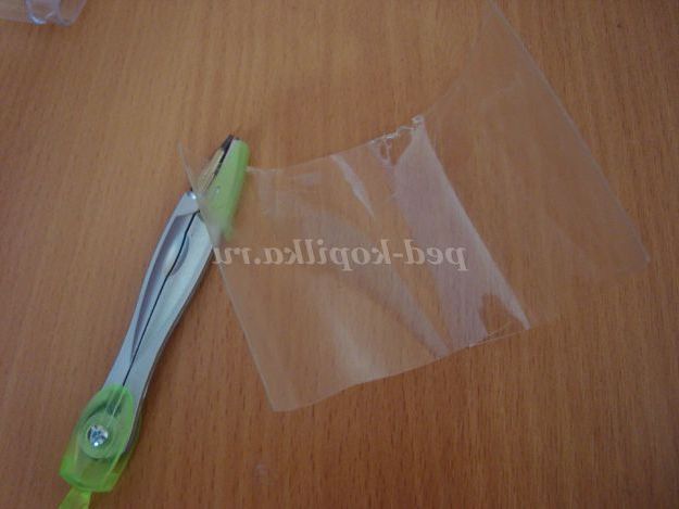 8)Далі з пляшки вирізаємо пластиковий шматочок.