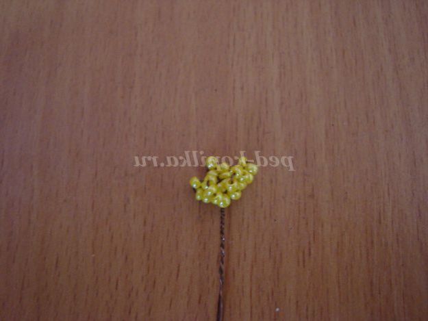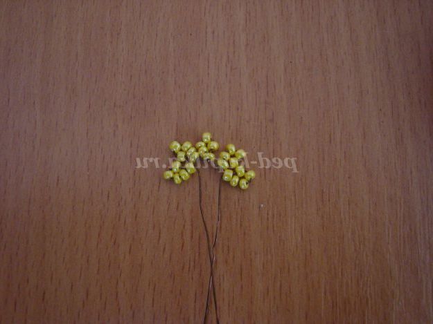 22) Знову набираємо на робочий кінець дроту 8 см бісеру і скручуємо тепер знизу кінці дроту.