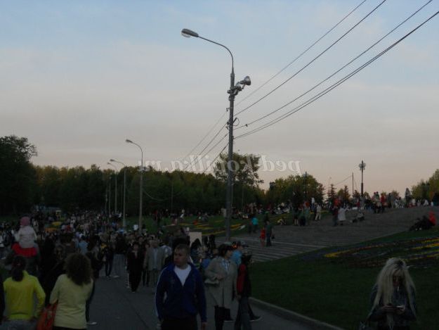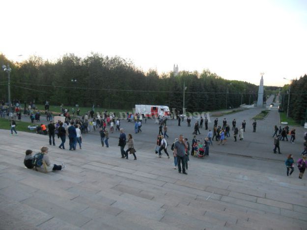 За порядком у парку так само стежили і вертольоти патрулюють в небі над парком (встиг сховатися за березою)
