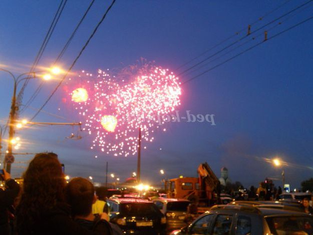Коли почався салют всі автовласники вийшли з машин і дивилися салют,утворилася величезна пробка,однак ні хто не сигналив і не обурювався,всі милувалися цим чудовим видовищем і довгоочікуваним