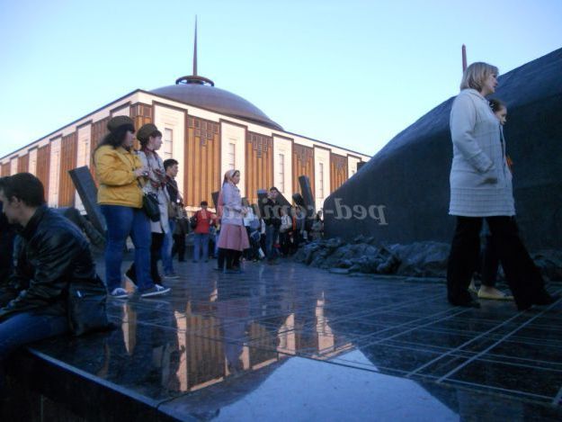 По алеї, що веде до будівлі музею вся дорога заповнена людьми
