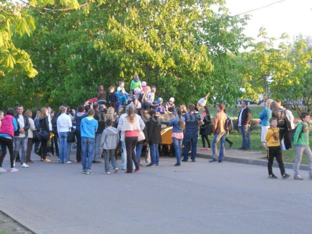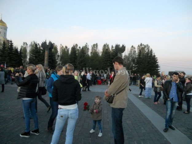 Люди приходили до пам'ятника з квітами,у військових пілотках з дітьми