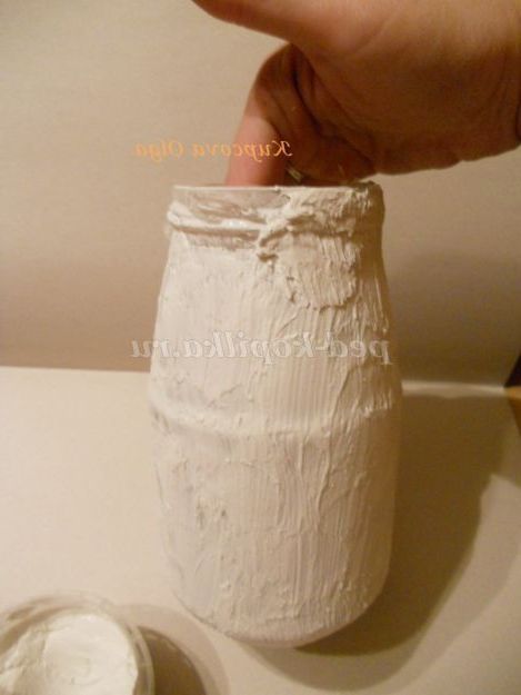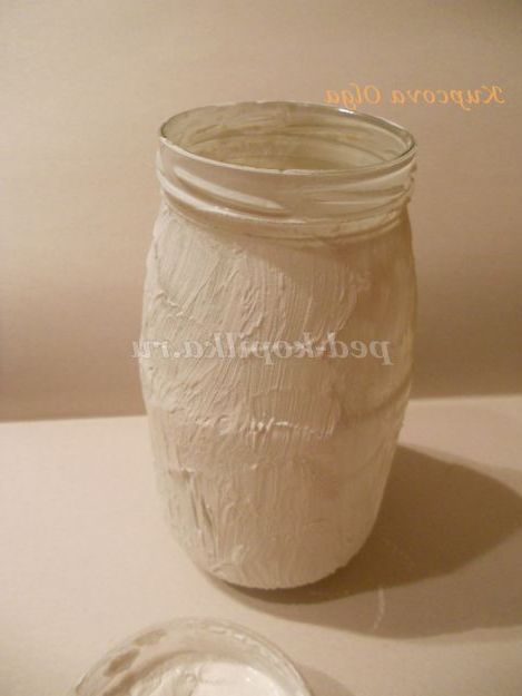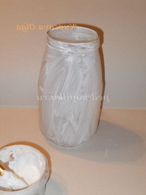 І так, додавши на кисть трохи води наносимо перший,тонкий шар на всю поверхню банки.