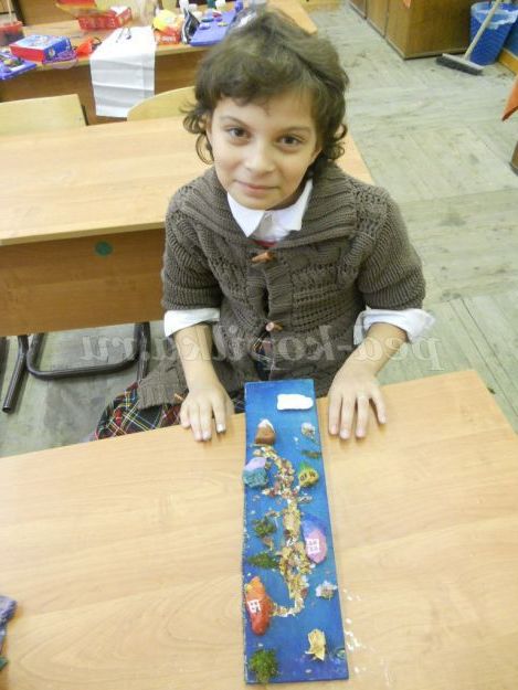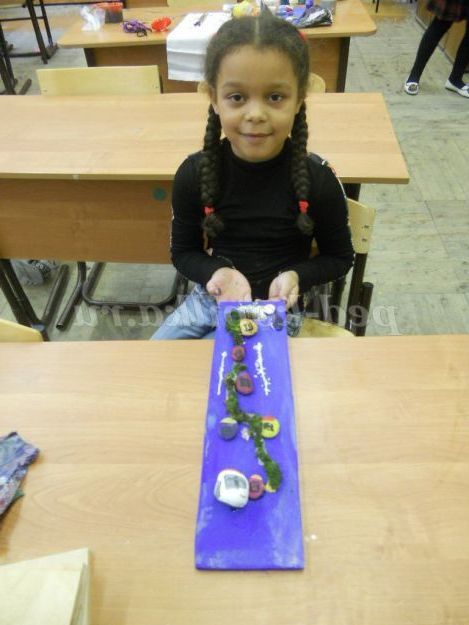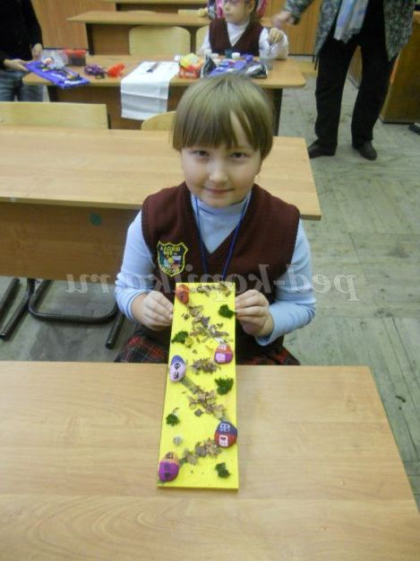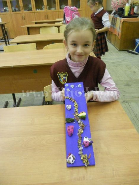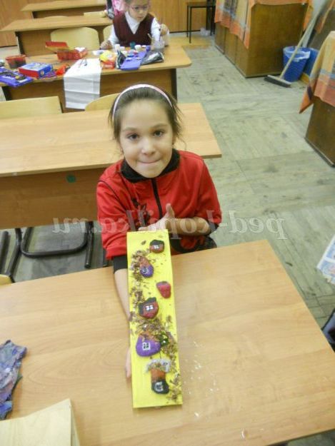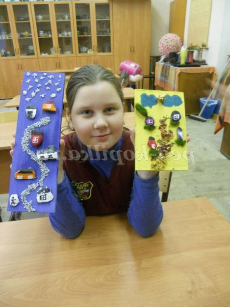 Поки будиночки підсихають можна подумати про доріжці. У школі панно ми робили вже восени і прийшла чудова ідея зробити доріжки із дрібно покришені засушеного листя.