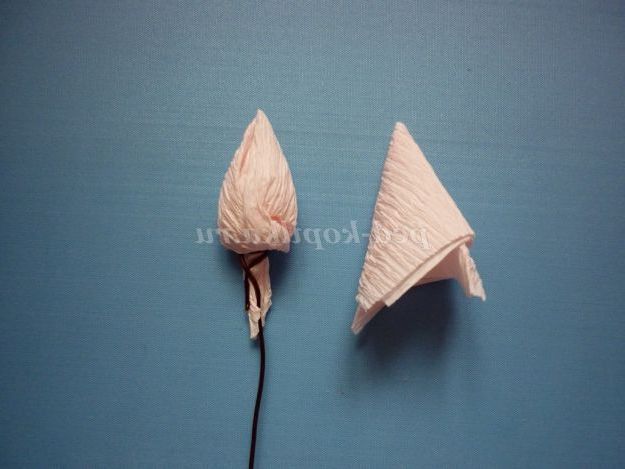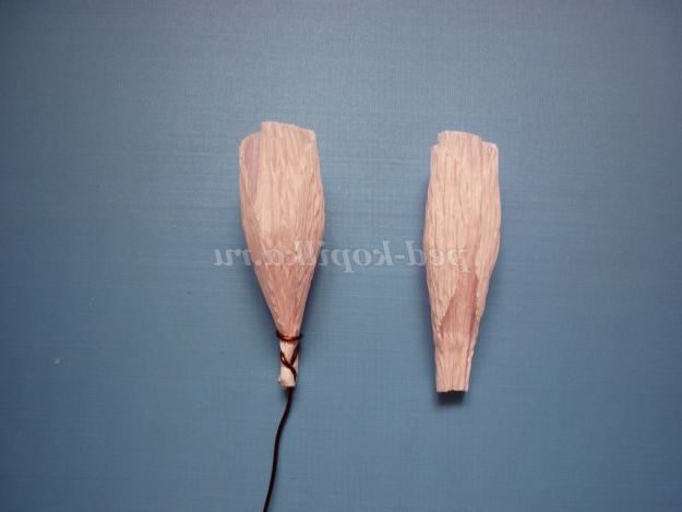 Робимо бутон, вставляючи один листочок в середину іншого. Закріплюємо бутон дротом довжиною 25 див.