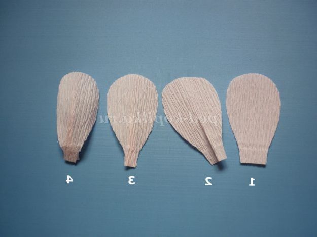 Смужкою паперу шириною 2см обмотуємо дріт. Зовнішній листок бутона розтягуємо по краю, робимо його трохи відкритим.