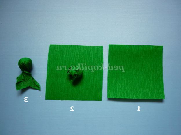 Робимо великі бутони. Їх нам знадобиться 3 штуки. Кожен бутон складається з 2 листочків, значить, нам потрібно 6 листочків.