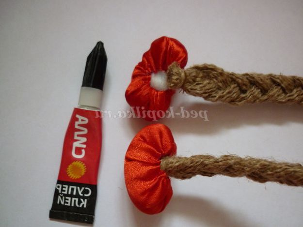 Візьміть червону атласну стрічку 25см. Складіть її як показано на фотографії.