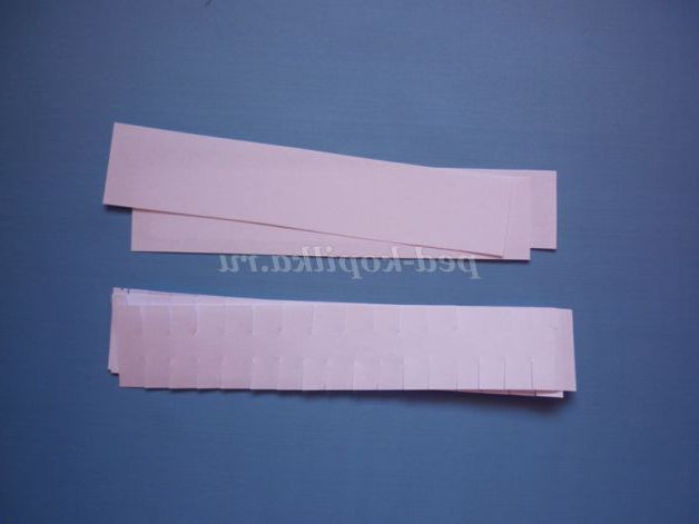 Наріжемо смужки білого паперу шириною 2см. Зробимо надрізи з обох сторін по довжині смужок.