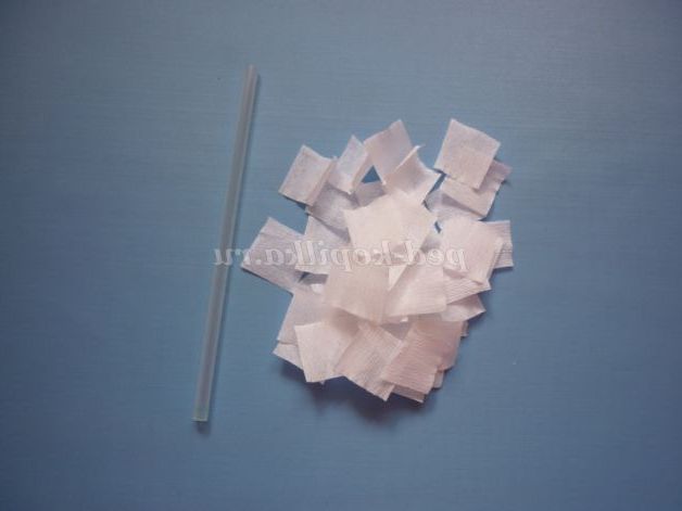 Зі смужок паперу нарізаємо квадрати зі стороною 2 див. (чим більше розмір квадрата, тим вище ворс)
