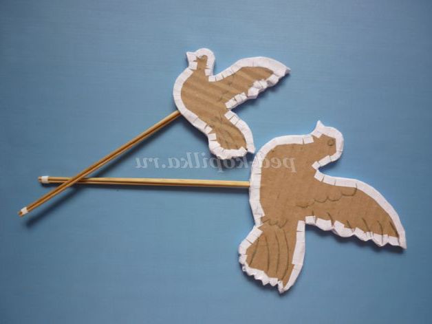 Закріплюємо голубів на паличках.