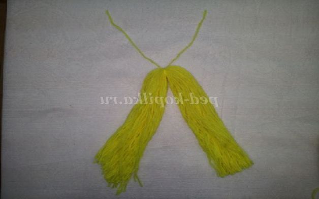 2.Так ж робимо наступну заготовку з ниток для в'язання, це будуть кіски для лялечки (довжина кос довільна).