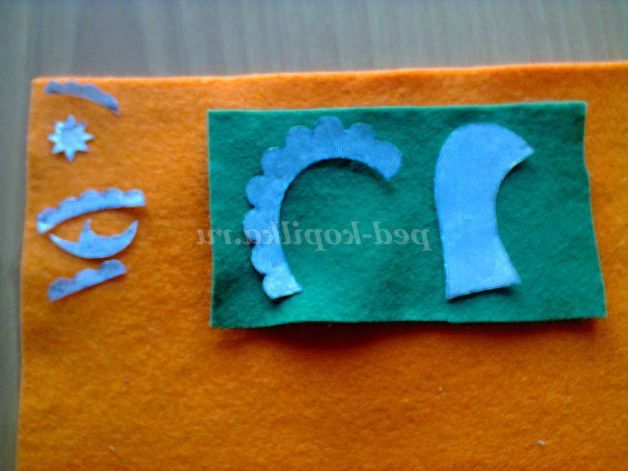 - фетр жовтого, помаранчевого, малинового, червоного, синього, чорного і зеленого кольорів