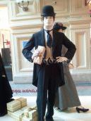 При головному вході від мавзолею нас зустріла галерея манекенів, одягнених у вбрання кінця 19 початку 20 столетия.Преимущественно мода того часу складалася з досить приглушених тонів рожевого,бежевого (дуже багато бежевого різних відтінків)і темних тонів. Але були і яскраві елементи на тому ж самому бежевому,яскрава, синя стрічка дуже цікаво запнута на сукню.