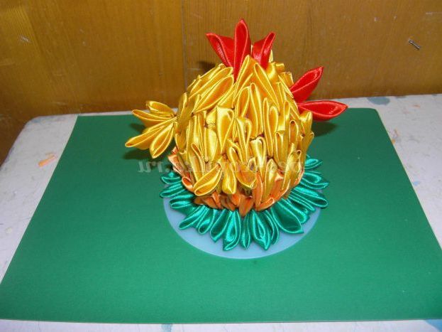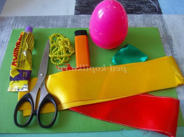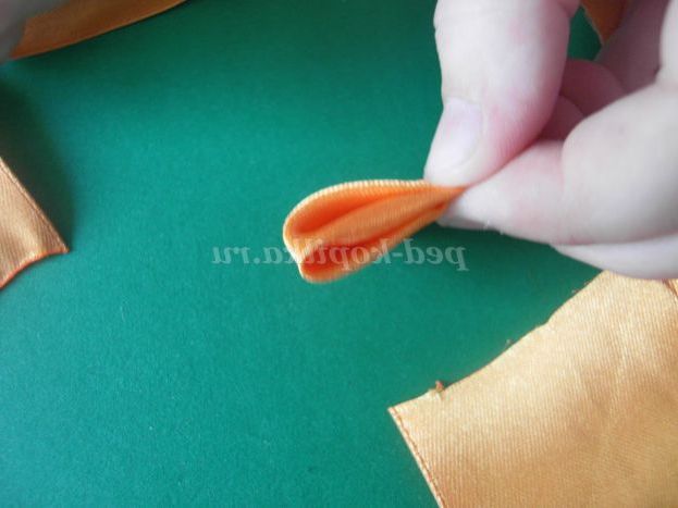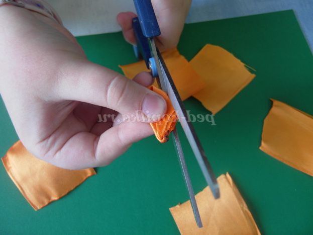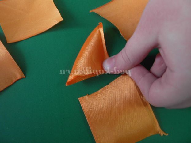 1. Нарізаємо атласну стрічку жовтого кольору на квадрати 5*5 см