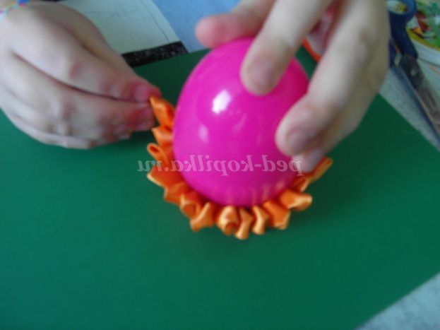 8. Отримані пелюстки приклеюємо на пластмасове яйце шарами (фото 8,