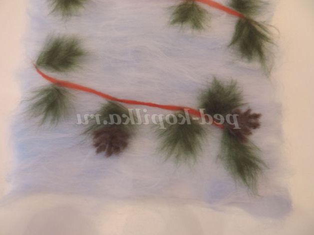 21. Припорошим гілки та шишки «сніжком» з дрібно стриженої білої вовни.