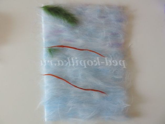 3. Витягуємо тонкі пасма вовни і викладаємо на тканинну