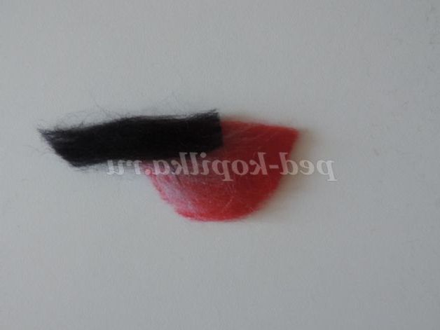 22. З дрібно-стриженої червоної вовни, за допомогою пінцета, робимо і