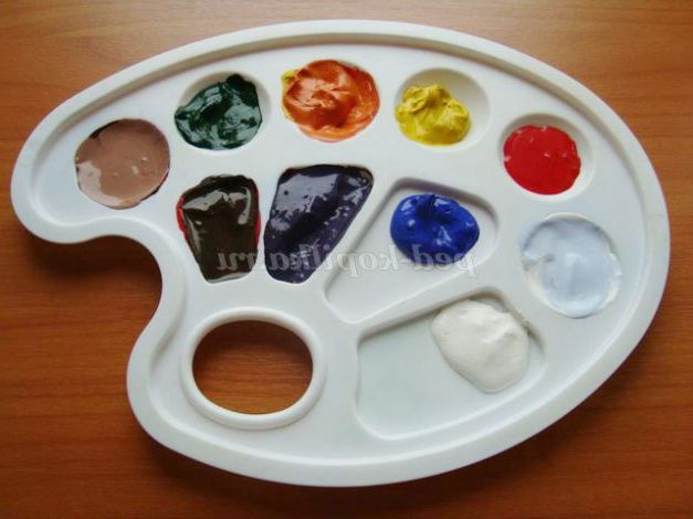 2. Фарби з банок викладаємо в палітру, використовуючи стек для ліплення. Промиваємо його, витираємо серветками. Економно і акуратно!