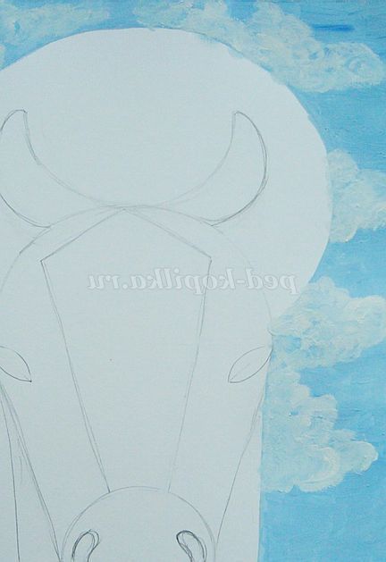 Зафарбовуємо голову, шию, частину тулуба так, щоб було видно лінії, що відокремлюють морду, шию.