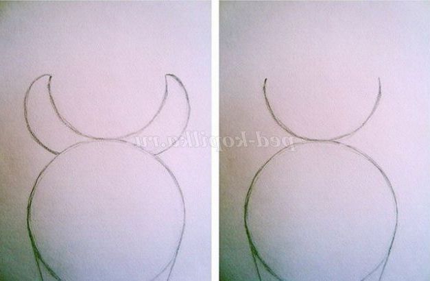 Малюємо півколо. З обох сторін вимальовуємо вуха.