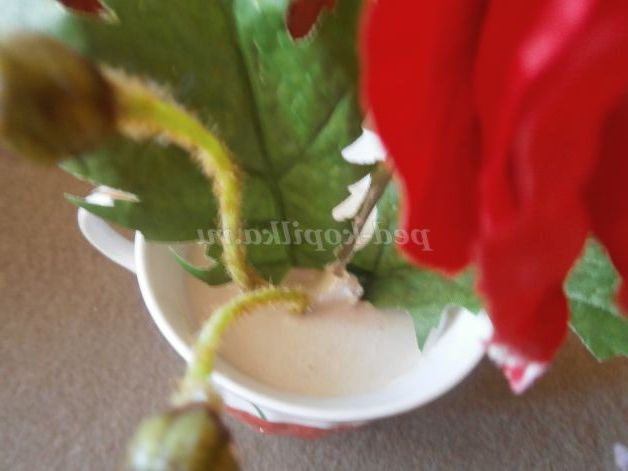 Квіти з мордочками поміщаємо в кухоль і заливаємо алебастром або гіпсом