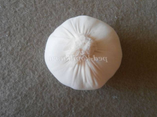 У середину покласти дрібні шматочки синтепону і стягаємо