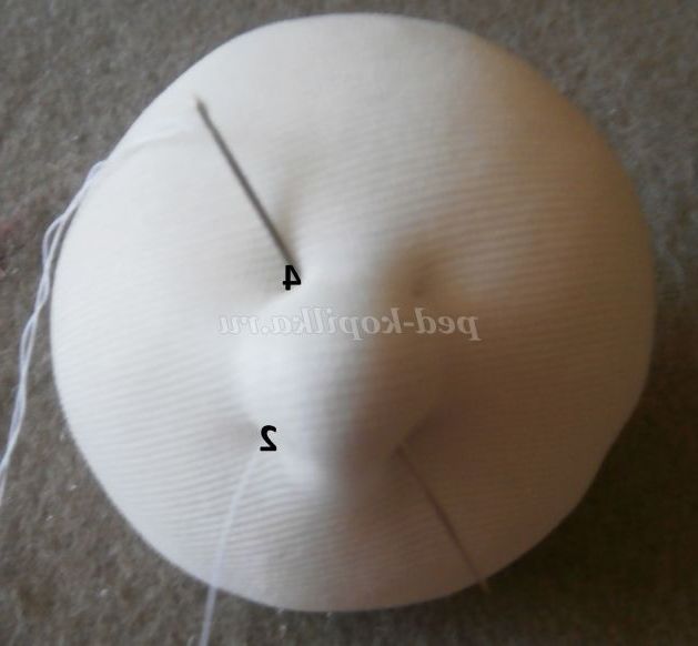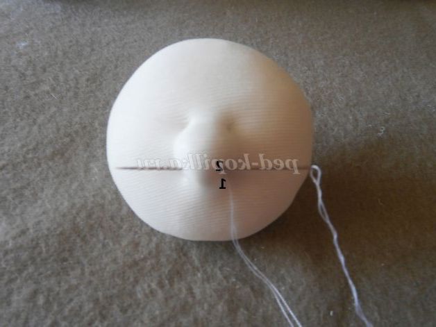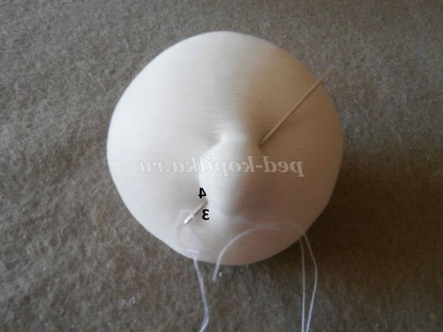 Такі ж стібки створюємо в цифрі 2,3,4. Нитки добре затягуємо. Виходять чотири точки, що окреслюють носик