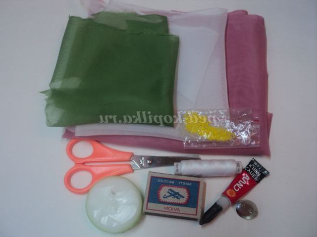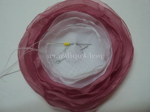 Зрізи деталей необхідно обробити над полум'ям свічки. Шифон дуже добре плавиться під впливом високої температури. Це необхідно зробити для того, щоб краї деталей не обсыпались, а також додасть їм характерний вигин.