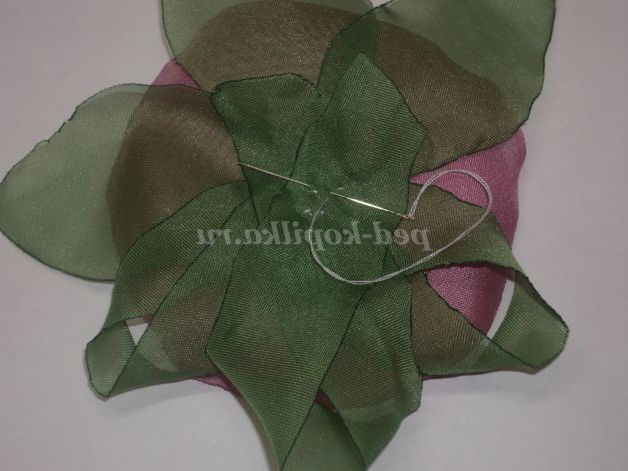 Пришийте смужки під листям так, щоб краї закрили шви, якими були прикріплені листки до вінець квітки.