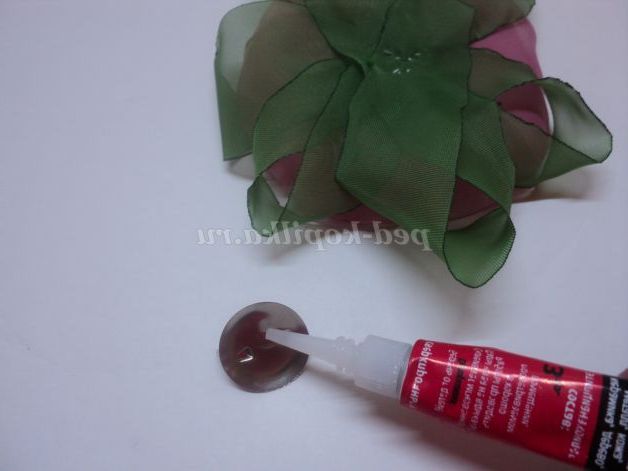 Прикріплюємо до квітки металеву заготовку для брошки за допомогою суперклею.