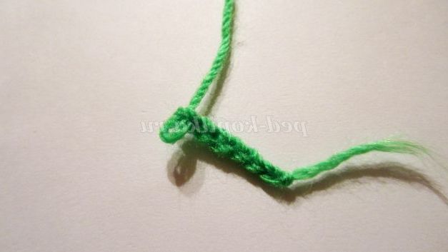 Набираємо 4 повітряні петлі, стовпчик з накидом, повітряна петля, стовпчик з накидом, повітряна петля, стовпчик з накидом, повітряна петля, стовпчик з накидом, повітряна петля, стовпчик з накидом, повітряна петля, стовпчик з накидом, повітряна петля, стовпчик з накидом, дві повітряних петель з'єднуємо з початком.