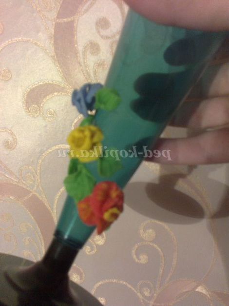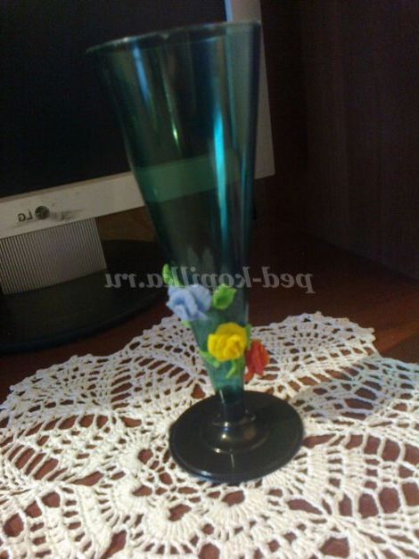 Пропоную ще один варіант використання кольорів. Проста одноразовий посуд, перетвориться в ексклюзивну вазочку для квітів. У цьому варіанті я використовувала суперклей "Момент".
