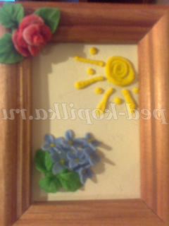 Ще дуже цікаво виходить працювати холодним фарфором з використанням медичного шприца. Їм можна просто малювати по будь-якій поверхні (попередньо нанесіть клей)або робити написи. У мене тісто коли пролежало досить довго і втратило свою еластичність, стало трохи рідкуватим, я стала використовувати його таким ось чином.