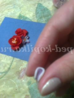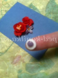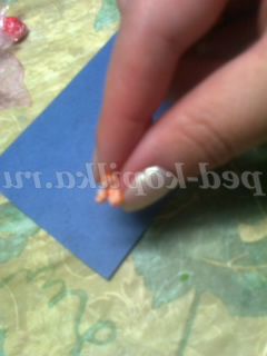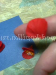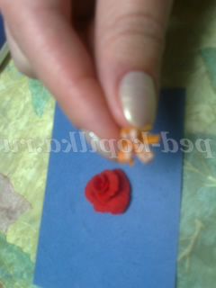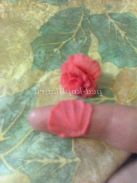 Трояндочку робити ще простіше. З "крапельки" зубочисткою розкачуємо пелюстка і скручуємо перший трубочкою, на нього в шаховому порядку прикріплюємо таким же чином наступні пелюстки, формуючи квітка троянди. Матеріал настільки пластичний, що сам підкаже, де потрібно загнути , де потрібно відігнути край лепестка.Я використовувала клей ПВА, коли прикріплювала один пелюстка до іншого (крапельку)