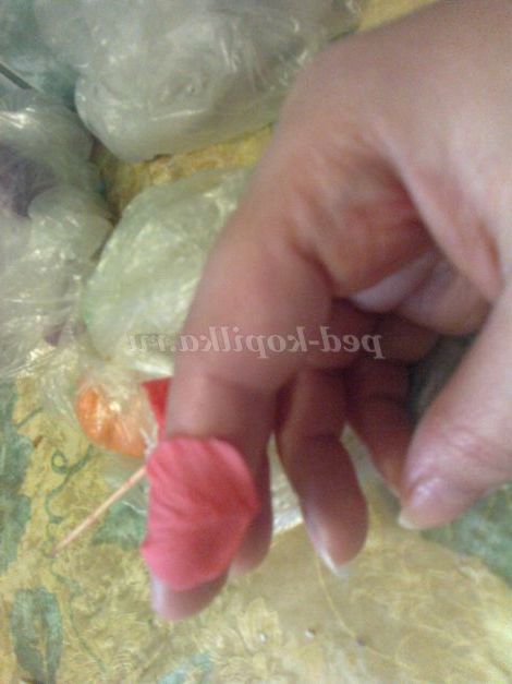Важливо зручно покласти пелюстка, з яким ви працюєте, на палець. Потім повертаєте квітка і працюєте з новим пелюсткою.
