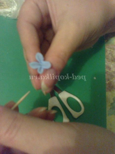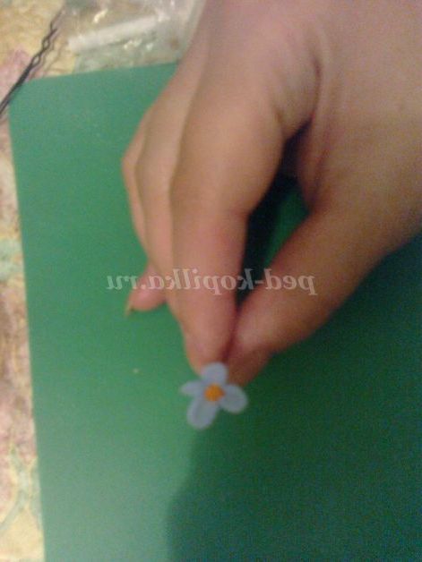 Це базова форма з якої можна робити незабудки, бузок, волошки та інші прості квіти. Василька центр можна зробити ось таким чином: