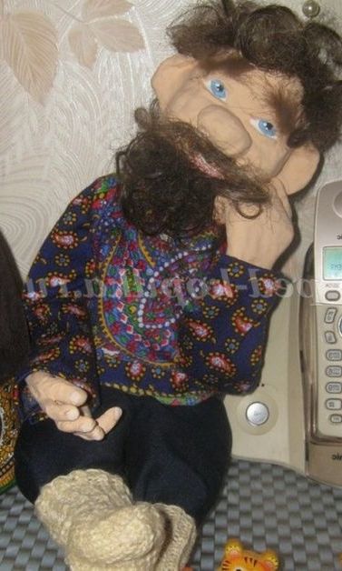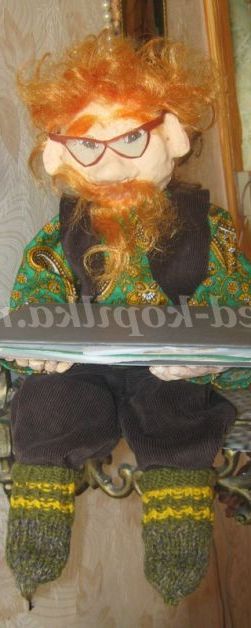 Фото №20: потім зшити одяг з простим лекалами, з пластикової пляшки вирізати окуляри для одного з будинкових і одягнути нових жителів своєї квартири. Я сплела шкарпетки,але можна одягти їм лапоточки, які продають бабусі