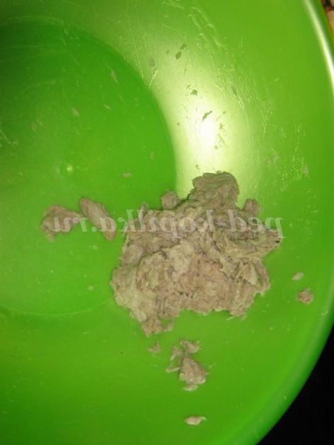 Фото №8: поки заготовки підсихають, зробити масу пап'є-маше: туалетний папір замочити водою, віджати, розірвати на дрібні шматочки і залити клеєм, все дуже ретельно перемішати, щоб вийшла однорідна маса