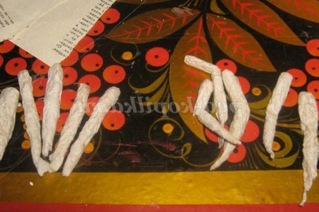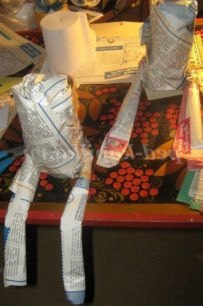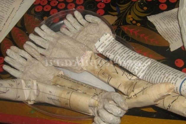 Фото №14: тепер перейдемо до рук: з туалетного паперу і клею скрутити пальці, надаючи кожному свою форму