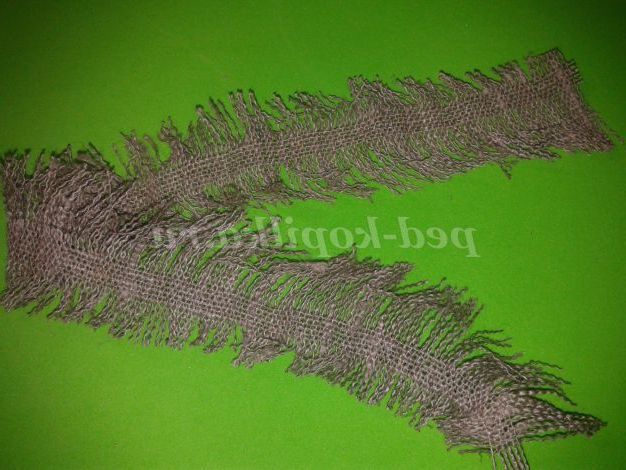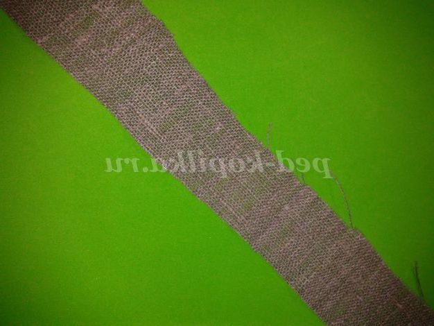 Поки деталі Ангела сохнуть, почнемо оформляти голову ляльки. Для цього відріжемо смужку з мішковини 25 на 3 див.