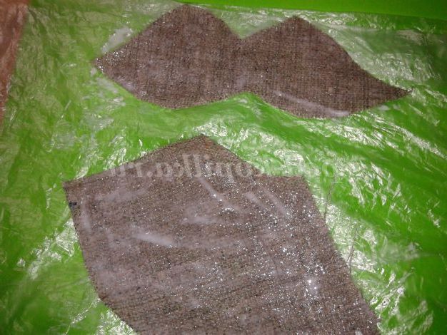 Виріжемо деталі з мішковини і для додання жорсткості промаж їх клеєм ПВА.
