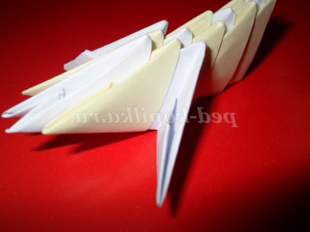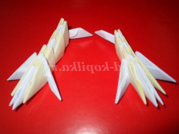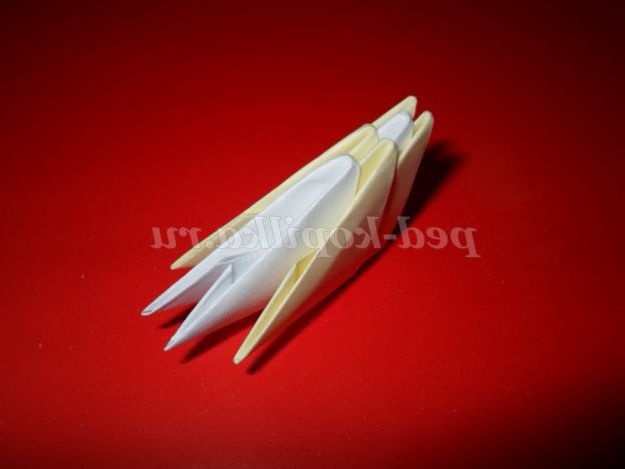 Зібрати за зразком. Нам знадобиться 8 жовтих модулів і 6 білих модулів для однієї кіски.