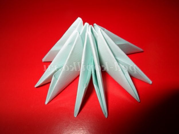 Встав куточки перших двох модулів у два кишеньки третього модуля.